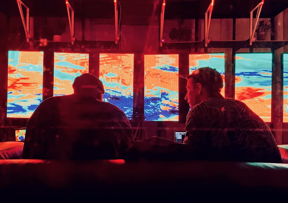 Haroun Landrin, designer industriel et scénographe primé (Nsono, prix CO-lègia 2017), sculpte l’espace avec une installation LED dynamique, pensée comme une structure vivante, réactive et architecturale. Son travail joue avec la matière et la lumière, offrant un terrain de jeu aux visuels génératifs.
